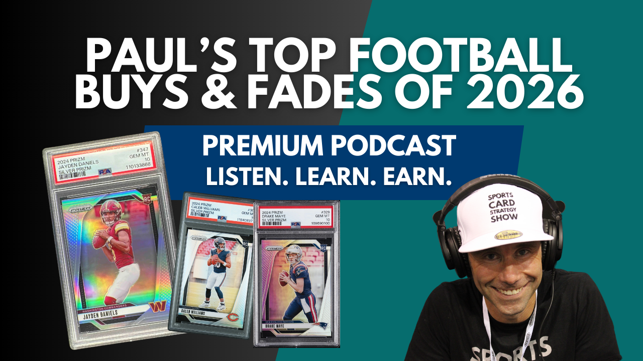 In this episode of The Premium Pod (aka Overflow Show), we help premium members make money flipping sports cards. We answer these questions and more… How to pre-grade raw cards How to tell the difference between a base prizm and a silver prizm Should you grade cards one at a time at PSA if you don’t have the funds for a bulk submission? Does POP Count Matter on a flier prospect card? When should you sell your NBA prospects? What is the best way to ship cards when not using eBay? What’s up with Trevor Lawrence 2021 Prizm Gem Rate? Will CJ Stroud’s Prizm Silver PSA 10 dip huge due to rising POP Count? Want This Show? We Don’t Blame You! Go Premium! Get this piece and all of our other premium content, including the full investment report, featuring an in-depth look at which cards to buy now, how long to hold them and when…